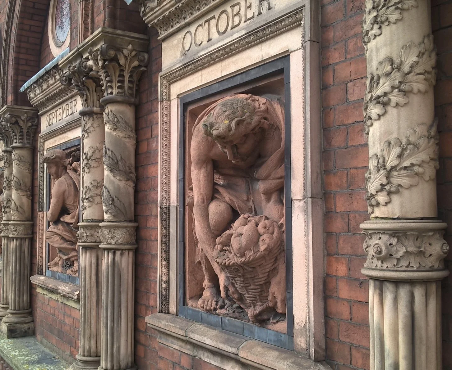 Twelve terracotta discs are of the months and below them are high relief carvings representing the signs of the zodiac. The panels were designed by Robert Edgar and John Lockwood Kipling, father of Rudyard Kipling. The foundation stone was laid on 26 October 1863 by William Gladstone and the building opened in 1869.